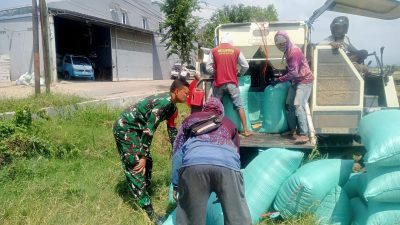 Dukung Swasembada Pangan Nasional, Babinsa Dampingi Panen Padi di Kalijaga.