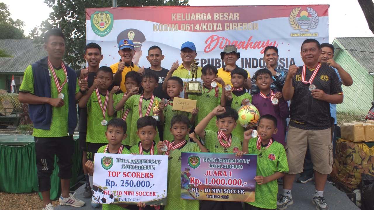 Adapun hasil akhir turnamen, Juara 1 kategori U-10 diraih oleh SSB PUTRA AGUS (Jamblang Kab. Cirebon), sementara Juara 1 kategori U-12 dimenangkan oleh SSB BINTANG AMATIR (Cibingbin Kab. Kuningan). Para juara mendapatkan piala, medali, dan penghargaan resmi dari Kodim 0614/Kota Cirebon. “Piala Dandim 2025” diserahkan langsung oleh Komandan Kodim 0614/Kota Cirebon Letkol Inf Saputra Hakki, S.H., M.P.M.